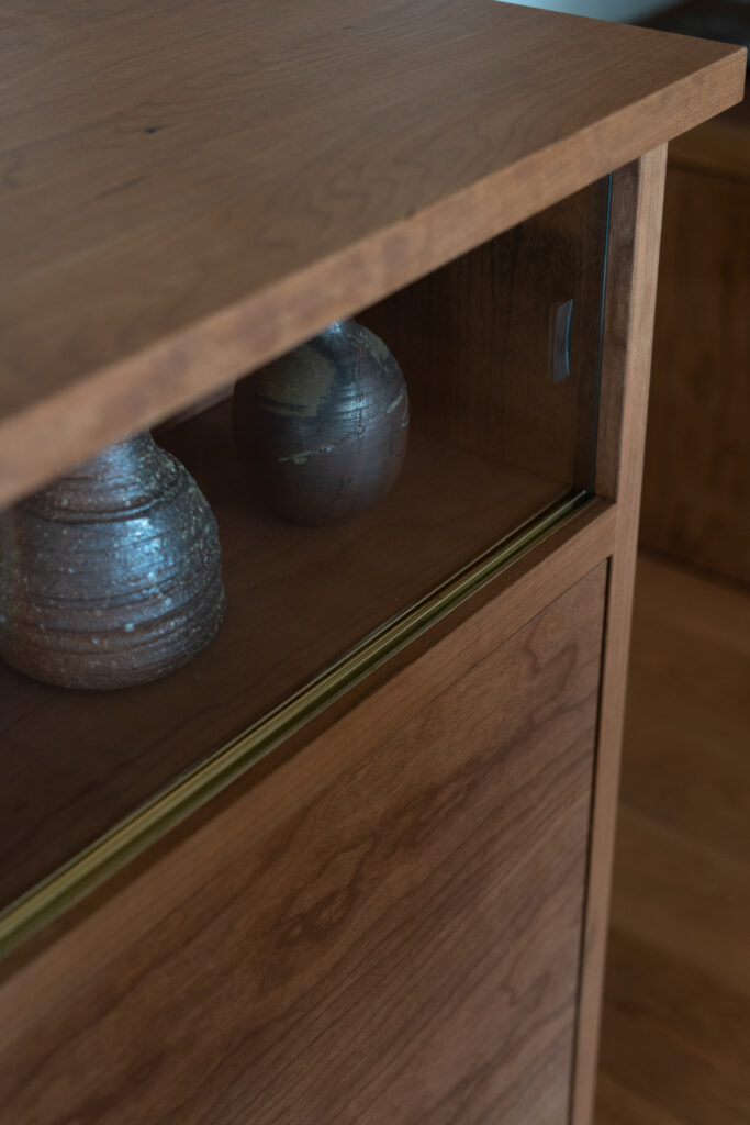 硝子を直接滑らせる「じか引き」用の真鍮製上下レールを特注で作成しました!今回のレールは掘り込み仕様となっており、硝子が接触する内側のみを磨き上げています。