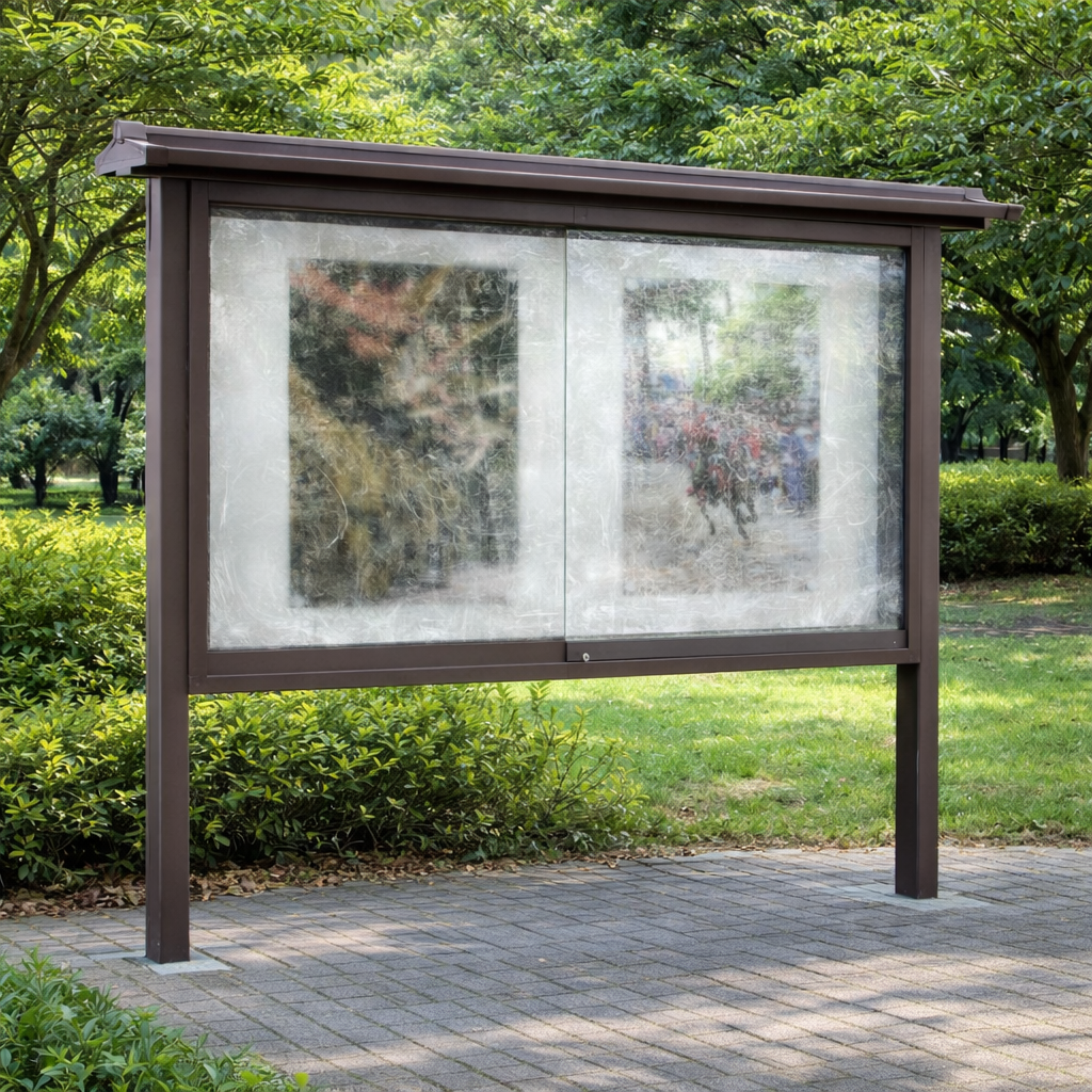 屋外掲示板に使われている透明カバー。