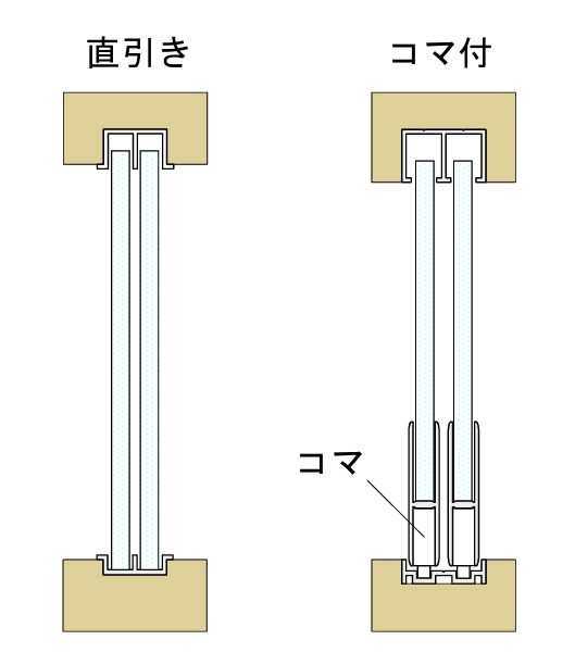 軽やかに動く「コマ付タイプ」と、見た目が美しくスッキリ納まる「直引きタイプ」。シーンに応じて使い分ければ、理想的な引き戸空間をつくることができます。