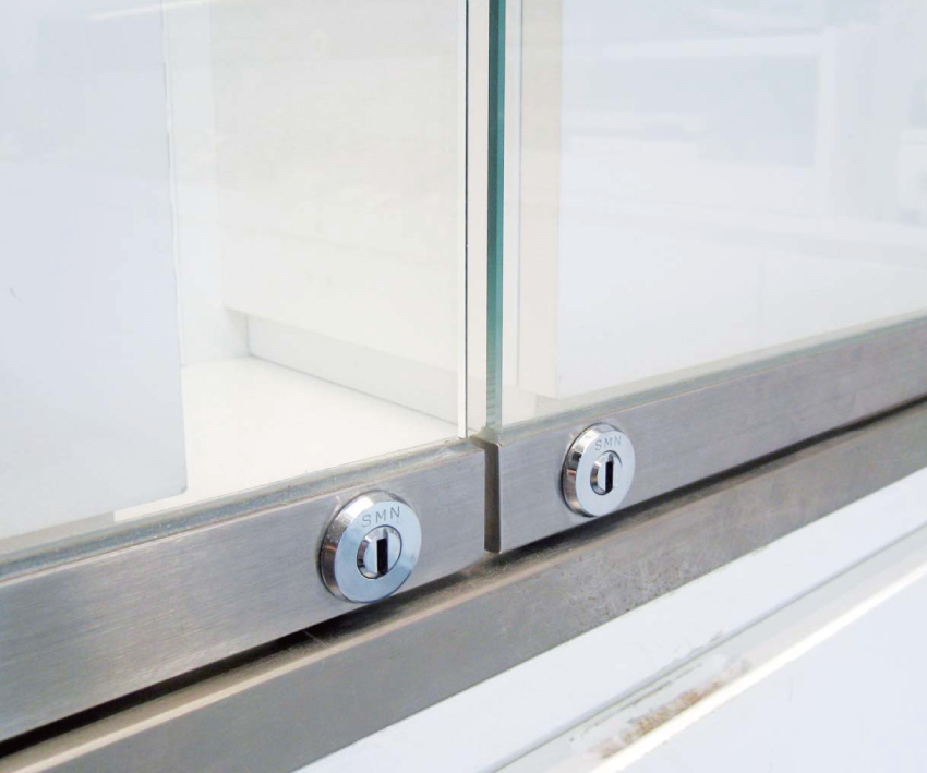 展示ケースでは、蝶番は来場者の目線に入る距離で見られます。