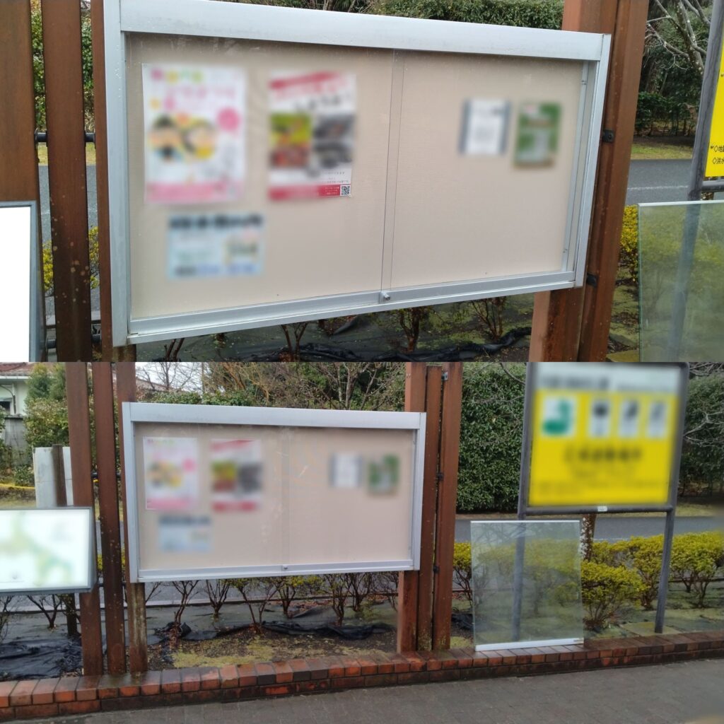 埼玉県内での公園掲示板引き戸修繕(交換工事)事例 No.389