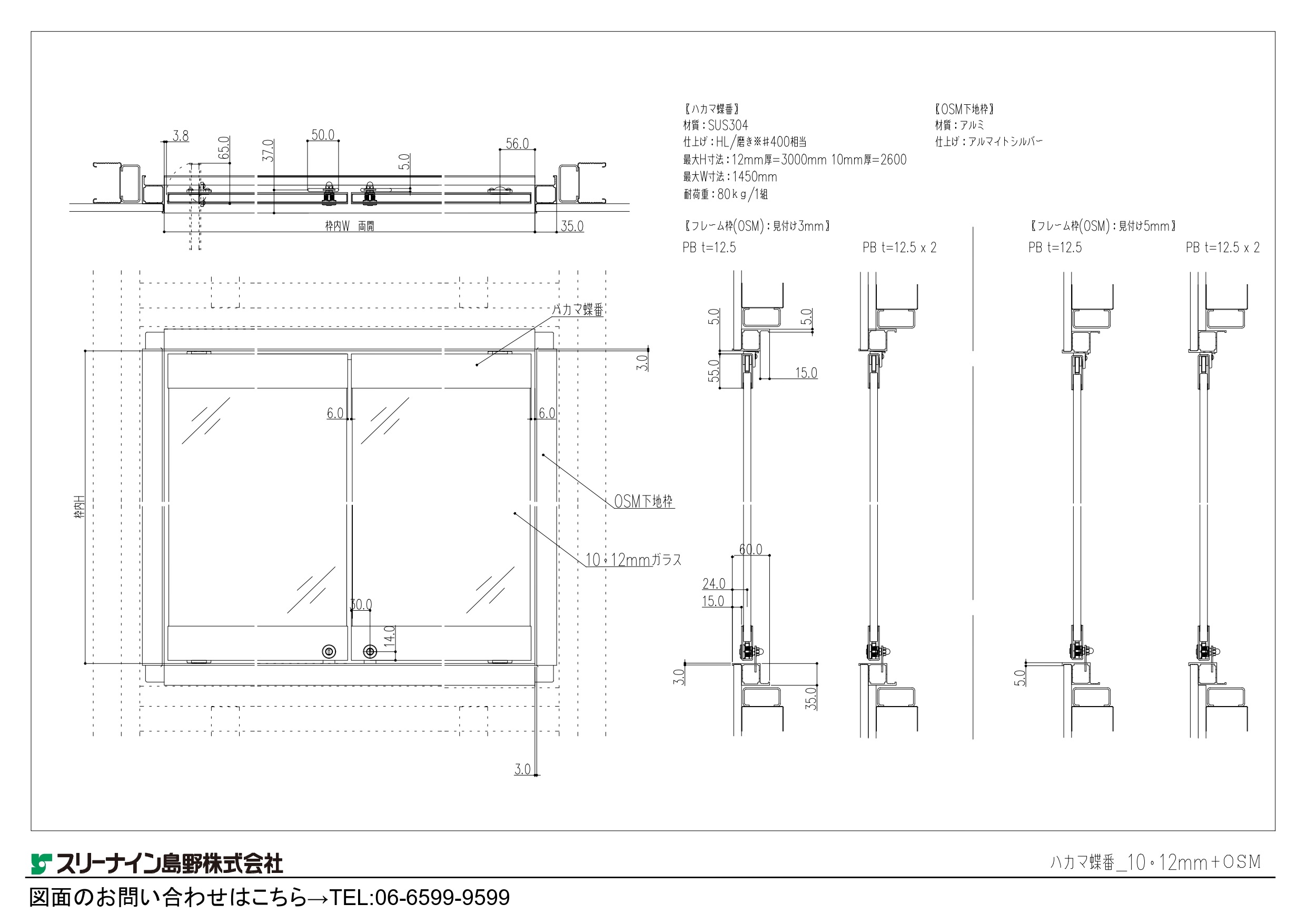 SUS304材にヘアライン/#600/#800仕上げを施し、5mm/6mm厚の鏡に対応します。